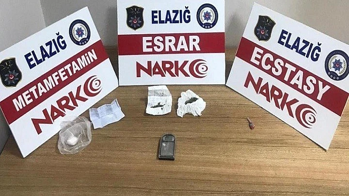 Elazığ'da bir araçta yapılan aramada çeşitli miktarlarda uyuşturucu madde ve hassas terazi ele geçirildi.