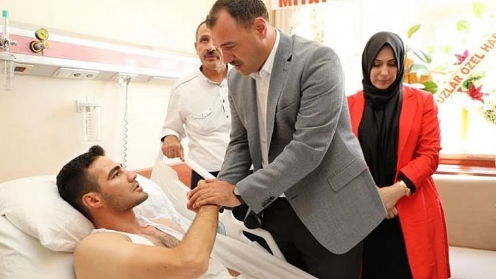 Mardin'in Nusaybin ilçesinde çıkan çatışmada yaralanan ve memleketi Elazığ'a sevk edilen Teğmen Kadir Gür'ü hastanede Vali Çetin Oktay Kaldırım ziyaret etti.