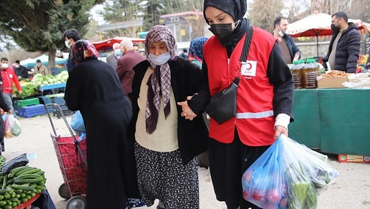 Vefalı gençler, pazara gitti yaşlılara yardım etti