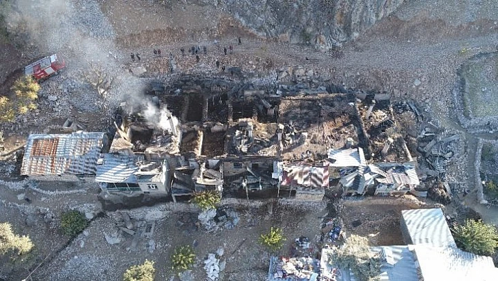 Elazığ'ın Arıcak ilçesine bağlı bir köyde çamaşır veya yayık makinesinden kaynaklanan kısa devre sonucu bir evde başlayan yangında 6 ev yandı. 27 kişinin yaşadığı 6 evde aileler, sağlam kalan bir kaç parça eşyasını çıkarırken, bugün havadan görüntülenen bölgede soğutma çalışmaları sürdü.