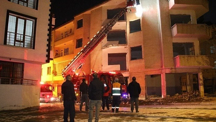 Elazığ'da depremde hasar alarak boşaltılan bir binada çıkan yangın itfaiye ekipleri tarafından söndürüldü. Bazı vatandaşlar ise sokağa çıkma kısıtlamasına rağmen dışarı çıkarak çalışmaları izledi.