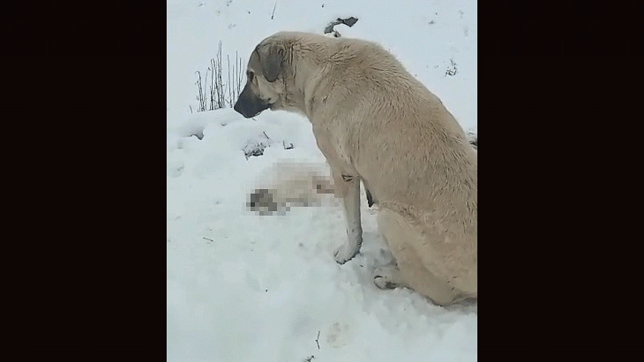 Elazığ'da ölen yavrusunun başında saatlerce kar altında bekleyen anne köpek, görenleri duygulandırdı.