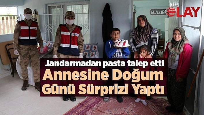 Elazığ'da 10 yaşındaki Hamza Ören, İl Jandarma Komutanlığı ekiplerinden talep ettiği pasta ile yeni tip koronavirüs tedbirleri kapsamında dışarı çıkamayan annesi Semra Ören'e doğum günü sürprizi yaptı.
