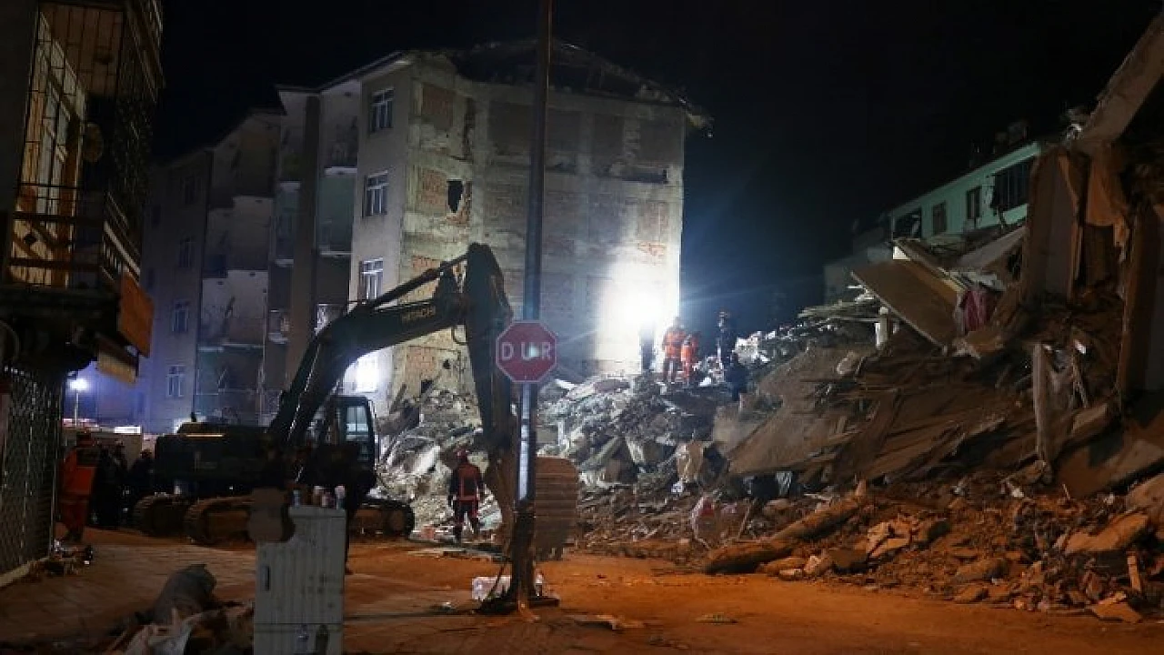 Elazığ’da meydana gelen 6,8 büyüklüğündeki depremin ardından bölgeye sevk edilen ekiplerin arama kurtarma çalışmaları devam ediyor. Mustafa Paşa Mahallesi’ndeki yıkılan bir binanın enkazı altında kalan son bir vatandaşa ulaşmak için hassas burunlu köpek eşliğinde devam ediyor.