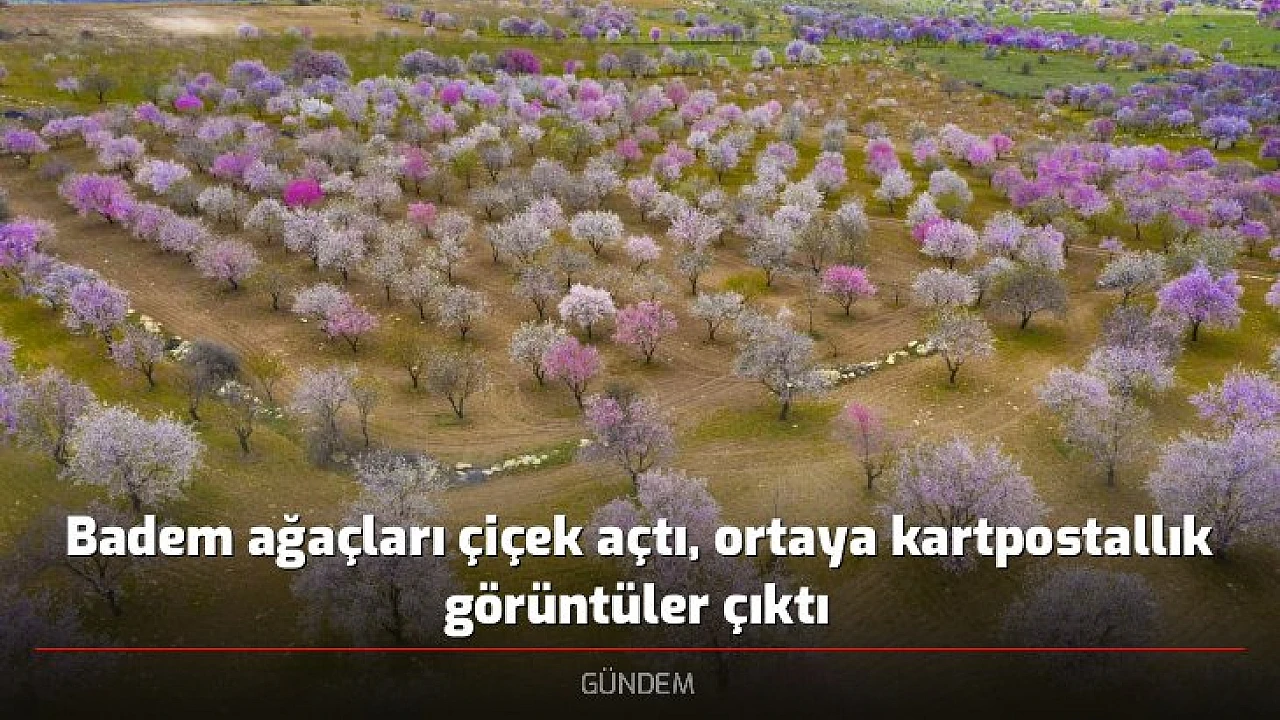 Elazığ’da çiçek açan badem ağaçları kartpostallık görüntüler ortaya çıkardı. Ortaya çıkan manzara dron ile havadan görüntülendi.