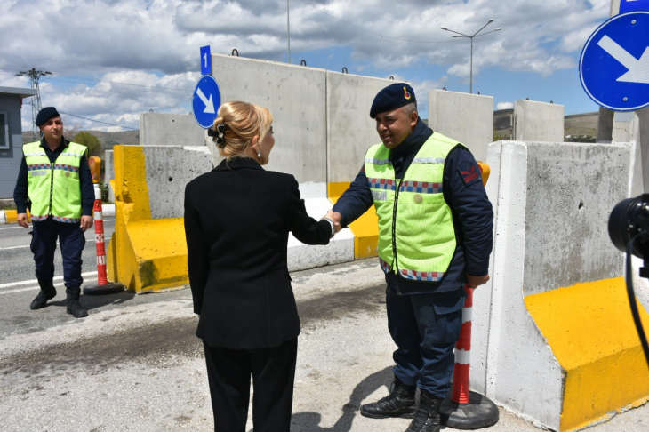 Vatandaşların huzur ve güven içerisinde bir bayram geçirmeleri için Bahçelievler Polis Kontrol Noktası ile Hankendi Jandarma Kontrol Noktasında görev yapan güvenlik güçlerini ziyaret eden Prof. Dr. Açık, ekiplerin bayramlarını tebrik etti