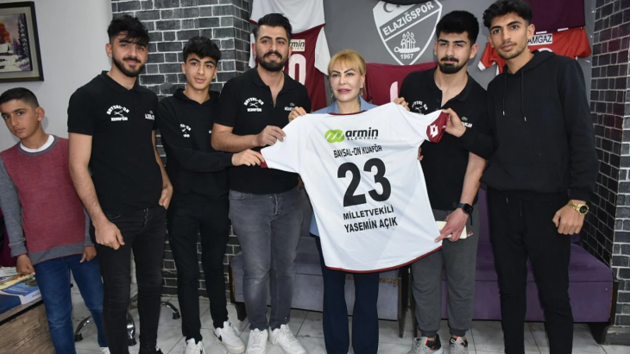 Gazi Caddesi’nde ziyaretlerinde yoğun bir ilgi ile karşı karşıya kalan Prof. Dr. Yasemin Açık’a arkasında Elazığ Milletvekili Yasemin Açık yazan Elazığspor forması hediye eden esnaf, “Elazığspor için yaptıklarınız yapacaklarınızın teminatıdır. “Siz bize arefeyi, biz size bayramı yaşatacağız” dedi.
