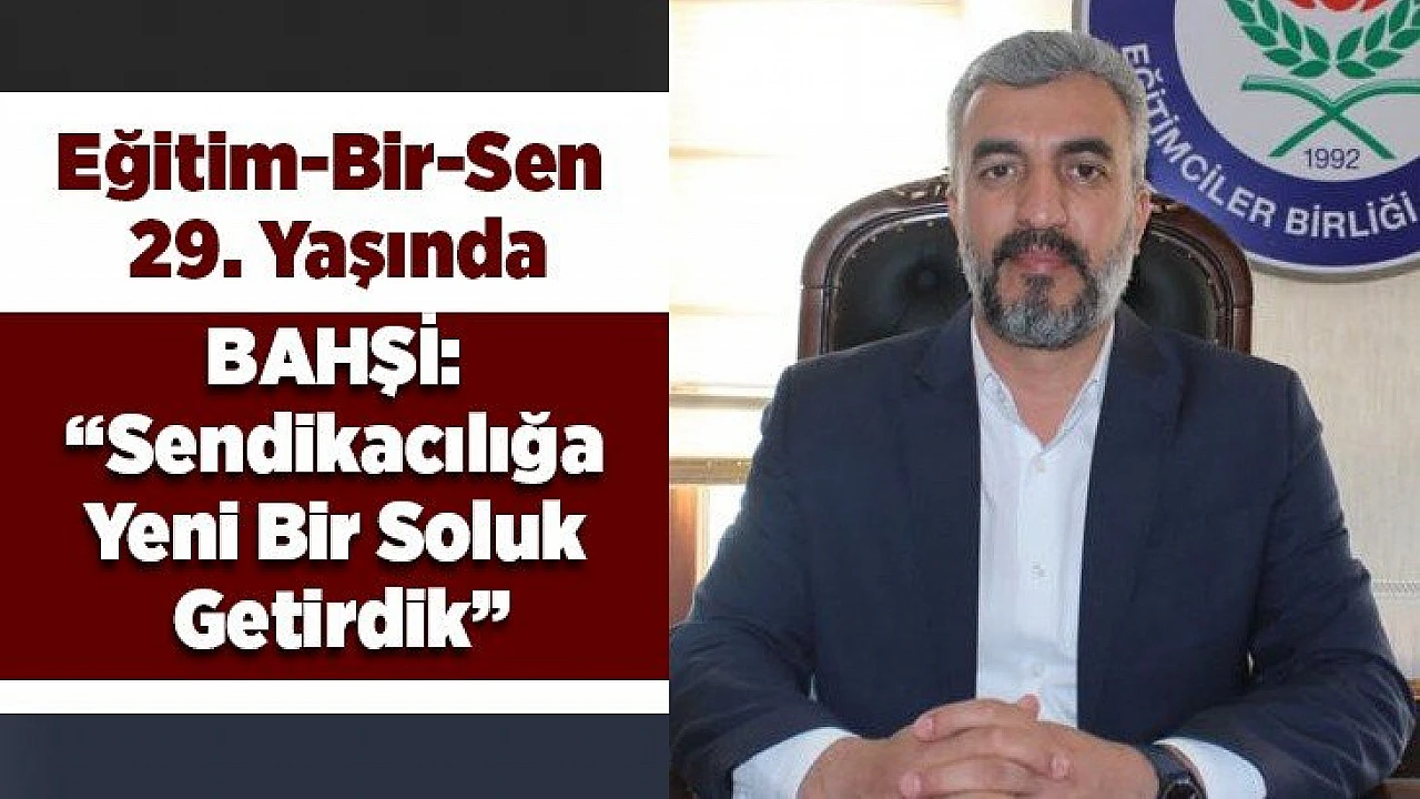 Sendika olarak kazanımlarla dolu hak, emek ve özgürlük mücadelesinde 29. yıla girdiklerini belirten Bahşi, "Fikirden aksiyona, birlikten sendikaya, birlerden yüz binlere, etkiden genel yetkiye, toplu görüşmeden toplu sözleşmeye, genel yetkiden zirveye, yerelden evrensele, zirveden yeni ufuklara, yeni ufuklardan yeni umutlara sürdürdüğümüz tarihimizde sendikacılıkta yeni bir çığır açtık, sendikacılığa yeni bir soluk getirdik. İnsan onurunu ayaklar altına alarak yasak, tehdit, baskı ve hakareti varlıklarını devam ettirmenin yegâne yolu gören zorbaları, mücadelesiyle dize getiren Eğitim-Bir-Sen, kalbimizi ve aklımızı köreltmeyi amaçlayan cehalete karşı ilim ve irfan meşalesini yakmanın öncüsü, milletin ufkunu kapatan karanlık duvarlara karşı aydınlık bilincin sözcüsü olmuş bir erdemliler hareketidir." dedi.