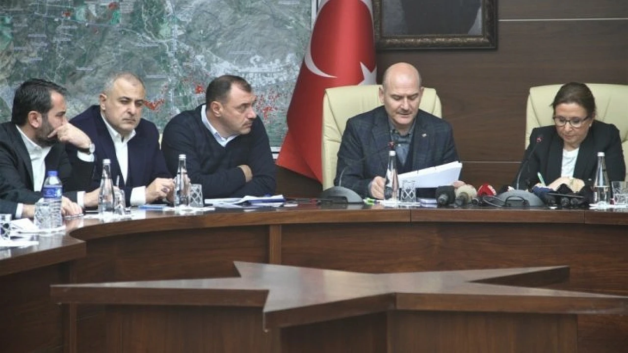 Bazen taşınma maliyetlerinin fahiş olarak artığının kendisine iletildiğine değinen Soylu, "Şu ana kadar yaklaşık 30 aracı jandarmanın elamanları ile birlikte 4 tane depo tuttuk. Buradaki balansı sağlayabilmek için bunu yapmak zorundayız. 3 ve 2 katına çıktığı söyleniyor. Zamanla herkes taşınmak istiyor. Bizde bu talebi karşılamak için o nakliye araçlar ile birlikte bedava yapacağız. Jandarmanın da böyle hizmet vereceğini de esas itibari ile söylemek isterim. Yaklaşık 27 noktada afet koordinasyon merkezlerimiz var. Hem vatandaşların taleplerini alabilmek. Hemde ağır hasarlı yıkık veya orta hasarlı az hasarlı hasarsız binalardaki vatandaşlarımızın bu konudaki değerlendirmelerine muhatap olabilmek. Hemde diğer taleplerine muhatap olabilmek için şu anda 27 ayrı noktada afet koordinasyon merkezi kurduk"dedi.