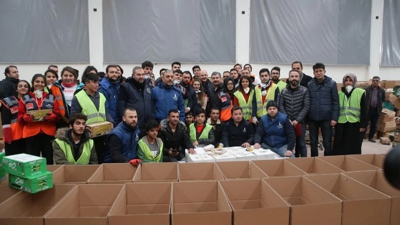 Elazığ'da depremin yaraları sarılmaya devam ederken sürekli sahada bulunan bakanlar Soylu ve Koca, yardım kolilerinin doldurulmasına da yardım etti.