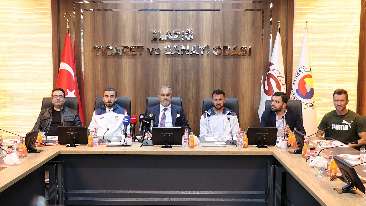 Elazığ Ticaret ve Sanayi Odası Meclis Salonunda düzenlenen toplantıya Elazığspor Başkanı Ahmet Fethi Yılmaz, Asbaşkan Mustafa Şerifoğulları ve futbolcular katıldı.