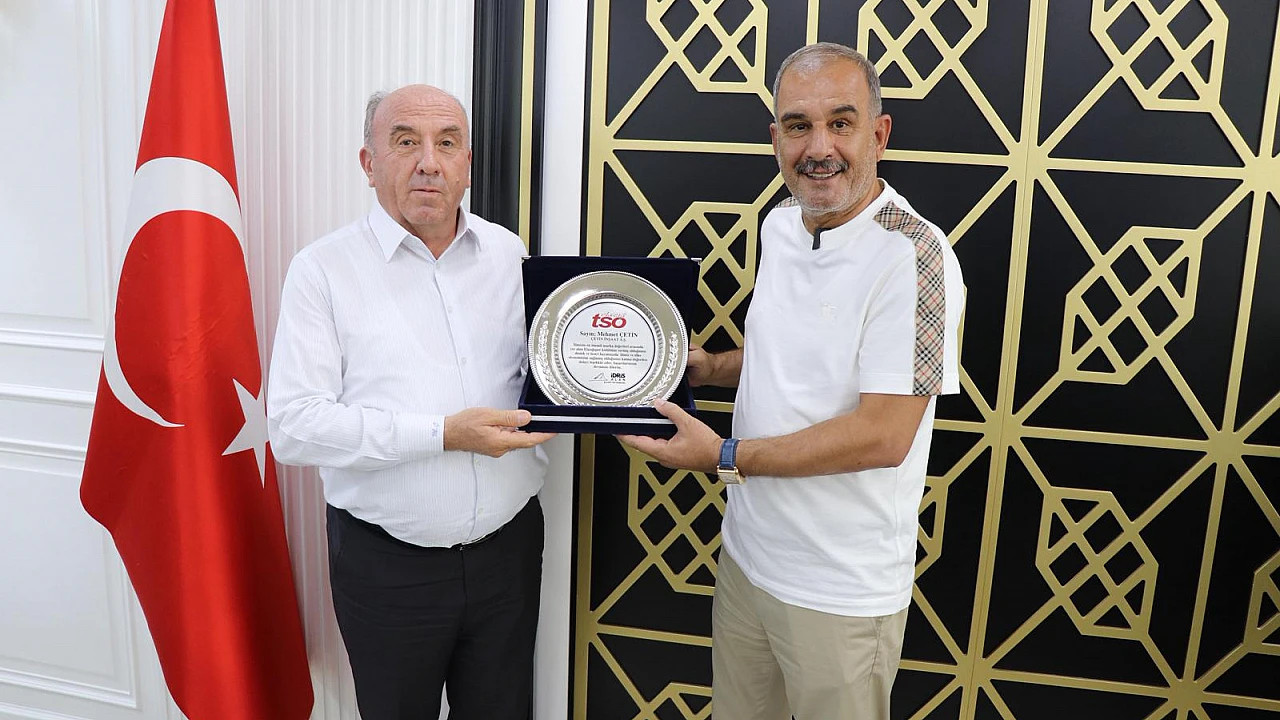 Ziyarette, Elazığspor’a sağladığı maddi destek ve katkılar anısına Mehmet Çetin’e bordo-beyaz forma ile plaket takdim edildi. Elazığ TSO Başkanı Alan, iş dünyasının önemli temsilcilerinden biri olan Mehmet Çetin’in hem Elazığ ekonomisine hem de Elazığspor’a verdiği desteklerle her zaman örnek olduğunu belirtti.