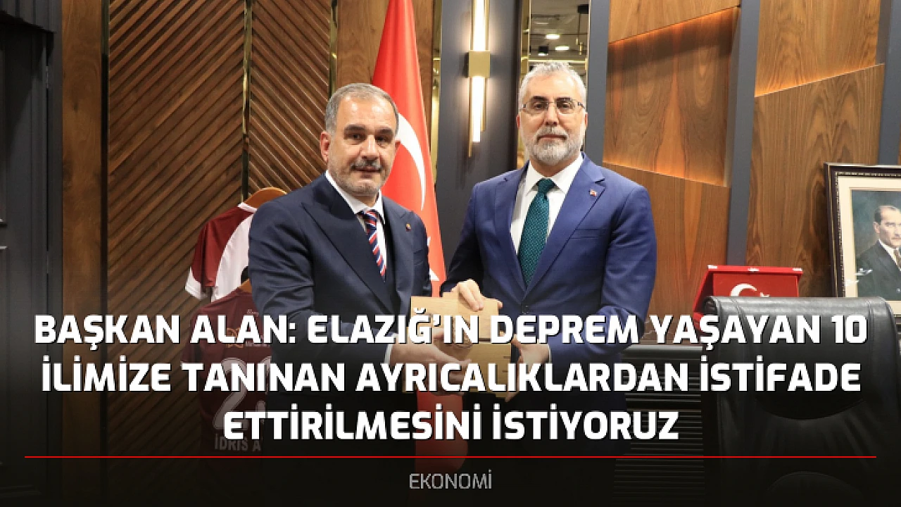 BAŞKAN ALAN: ELAZIĞ'IN DEPREM YAŞAYAN 10 İLİMİZE TANINAN AYRICALIKLARDAN İSTİFADE ETTİRİLMESİNİ İSTİYORUZ