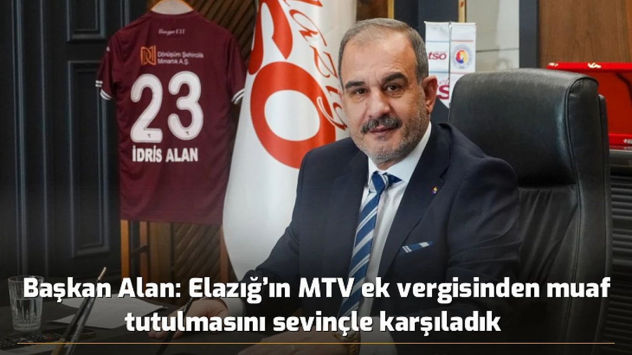 Elazığ Ticaret ve Sanayi Odası Yönetim Kurulu Başkanı İdris Alan, Elazığ'ın MTV ek vergisinden muaf tutulmasını sevinçle karşıladıklarını belirterek Cumhurbaşkanı Erdoğan'a Deprem Bölgesine göstermiş olduğu hassasiyet sebebiyle teşekkür etti.