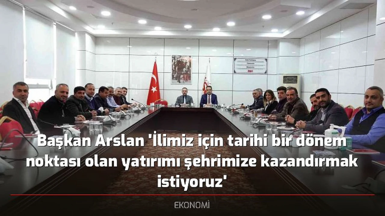 - Başkan Arslan 'İlimiz için tarihi bir dönem noktası olan yatırımı şehrimize kazandırmak istiyoruz'