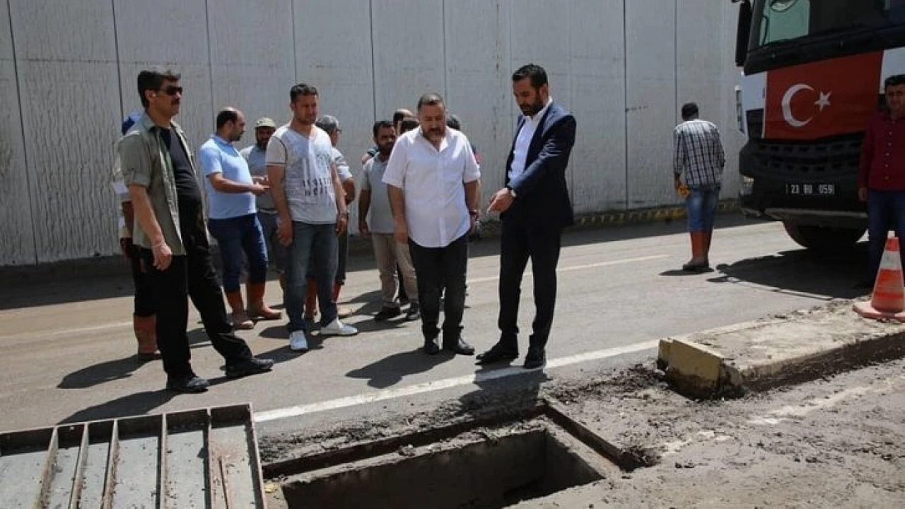 Elazığ'da önceki gün yaşanan şiddetli yağış sonrası oluşan sel ve su baskınlarında hasar gören yerlerde Belediye Başkanı Şahin Şerifoğulları inceleme yaptı.