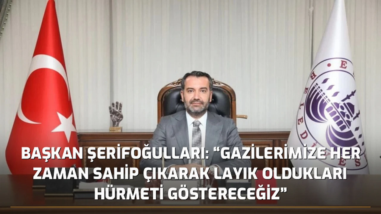 Elazığ Belediye Başkanı Şahin Şerifoğulları 19 Eylül Gaziler Günü nedeniyle yayımladığı mesajda, 'Bu toprakları bizlere vatan kılan aziz şehitlerimizin ve kahraman gazilerimizin üstün fedakarlıklarını ve mukaddes hatıralarını daima minnetle ve hürmetle yâd edeceğiz.' dedi.
