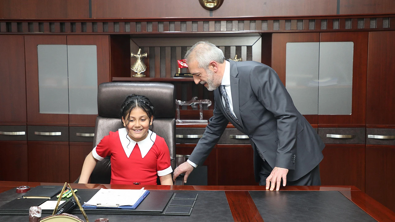 Başkan Şerifoğulları'nın makamını, minik öğrenci Birici devraldı