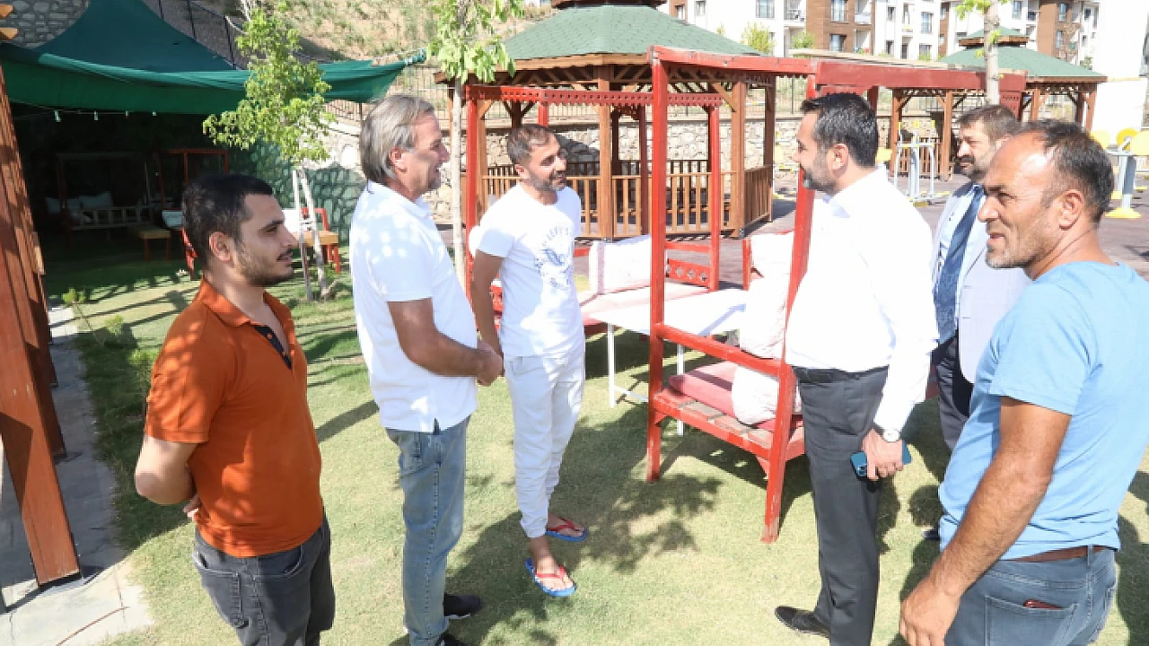 Mahalle sakinlerinin talep ve önerilerini dinleyen Başkan Şerifoğulları bir yandan da mahalle içerisinde yapımı devam eden belediye çalışmalarını inceledi.