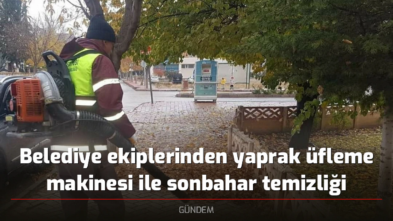Belediye ekiplerinden yaprak üfleme makinesi ile sonbahar temizliği
