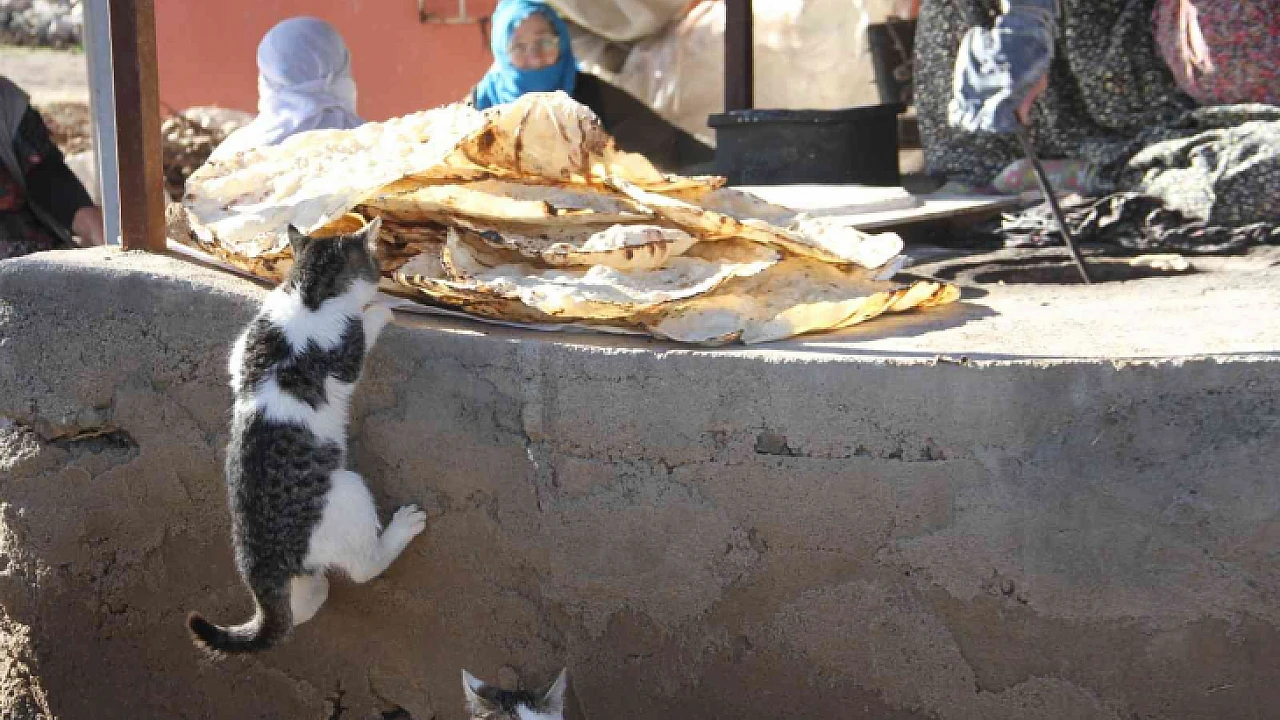 Soğuk havaların başlaması ile birlikte kadınlar arasında kış hazırlıkları telaşı da başladı. Günün ilk ışıklarıyla kış ayları için hazırlık yapan kadınlar, sabahın erken saatlerinde yaktıkları tandırda imece usulü her gün ekmek pişiriyor. Pişirilen ekmeklere ulaşmak isteyen bir kedinin sevimli halleri ise gülümsetti.