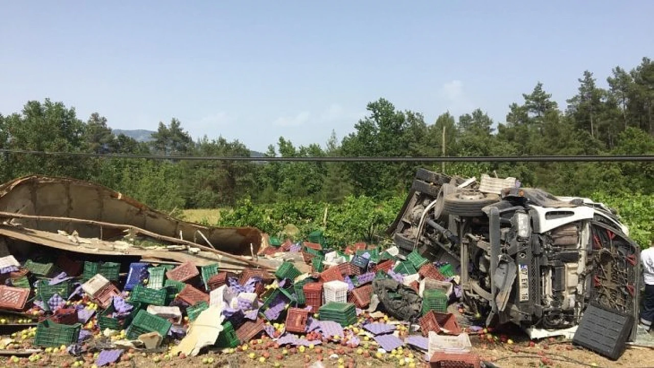 Burdur'da meyve yüklü tır devrildi: 1 ölü, 1 yaralı