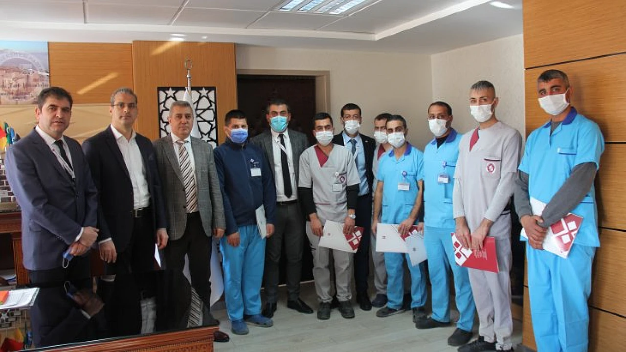 Başhekimlikte düzenlenen törende personeller Onur ÇELİK Yasemin NOZOĞLU, Abdullah DOĞRUER, Hayrettin ÖZEN, Hacı Ahmet KAYA, Basri ARTUĞ, Serdal SAKIL, Müslüm KARAKUŞ, Hasan DAĞOĞLU, Murat AYAZ, Yusuf KUŞ'a belgeleri verildi.