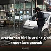 Çarpışan araçlardan biri iş yerine girdi, o anlar kameralara yansıdı