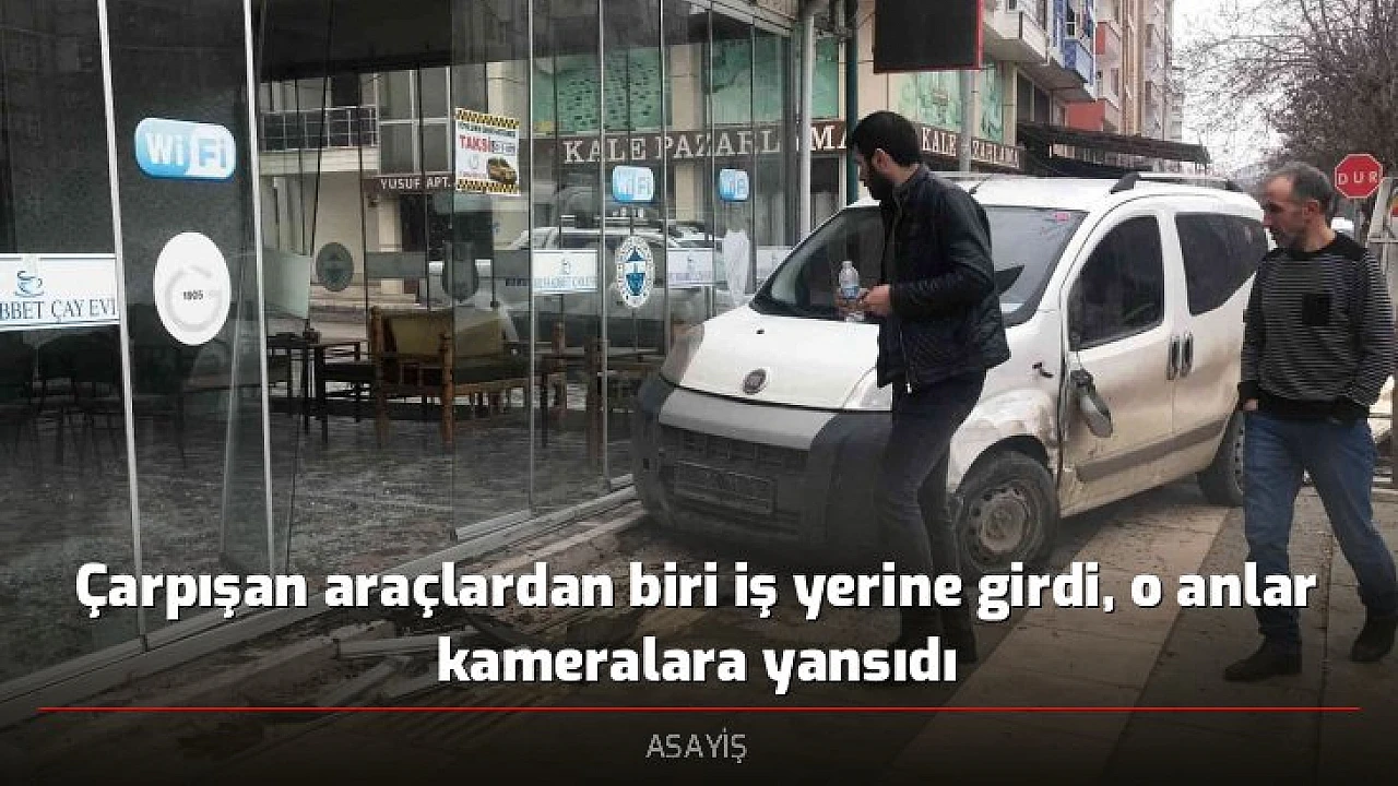 Kaza, merkeze bağlı Doğukent Mahallesi Seyda Molla Bahri Bulvarında meydana geldi. Edinilen bilgiye göre, sol şeritte ilerleyen 23 EL 949 plakalı otomobil, bir anda sağ şeride geçerek 23 LU 803 plakalı hafif ticari araca çaptı. Sürücüsünün kontrolünden çıkan hafif ticari araç, bir çay ocağına girdi. Kazada, şans eseri yaralanan olmazken iş yerinde ve araçlarda maddi hasar oluştu. O anlar ise saniye saniye başka bir iş yerinin güvenlik kameraların yansıdı.