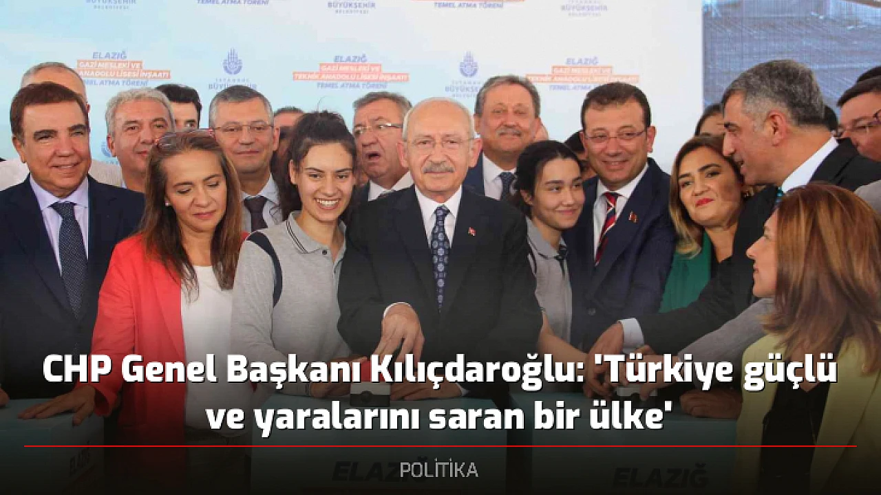 Elazığ'da okulun temel atma törenine katılan Cumhuriyet Halk Partisi (CHP) Genel Başkanı Kemal Kılıçdaroğlu, Deprem oldu, insanlar hayatını kaybetti, binalar ve okullar yıkıldı. Ama Türkiye güçlü bir ülke. Türkiye yaralarını saran bir ülke dedi.