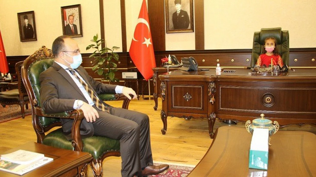 Vali Erkaya Yırık, 23 Nisan Ulusal Egemenlik ve Çocuk Bayramı dolayısıyla koltuğunu temsili olarak sırasıyla 2’inci sınıf öğrencisi Beyza Zorlu, 1’inci sınıf öğrencisi Mirza Aydınlıoğlu’na devretti. Koltuğa geçtiğinde ilk icraatı sorulan öğrencilerden Beyza, “Herkesi aşılamak ve korana virüsün bitmesini istiyorum” dedi. Ardından İl Emniyet Müdürü Celal Sel’i arayan Beyza, denetimlerin artırılmasını istedi. Koltuğa oturan Mirza ise, maske mesafe ve hijyene dikkat çekti.
