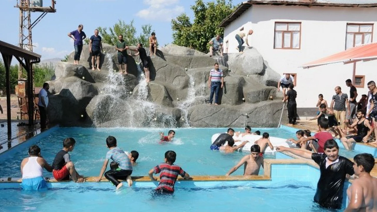 Elazığ’da bir beldenin belediye başkanı, seçim öncesi çocuklara verdiği sözü tutarak yüzme havuzu ve şelale yaptırdı.