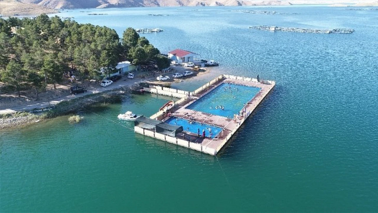 Türkiye'nin yarım adası konumdaki Elazığ'da önemli enerji üretim yerlerinden biri olan Keban Baraj Gölü'nde kurulan yarı olimpik 'Yüzer Havuz' hem boğulmalara karşı güven veriyor hem de yazın sıcağında deniz olmayan kentte yüzmeyi sevenleri ağırlıyor.