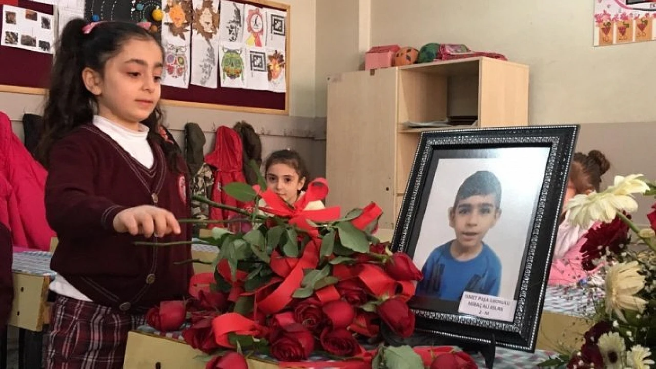 24 Ocak’ta meydana gelen 6.8’lik deprem nedeniyle Elazığ’da eğitim öğretimin yarı yıl tatili 3 hafta uzatılmak zorunda kalmasının ardından bugün öğrenciler ders başı yaptı. Ders zilinin çalmasıyla birlikte depremden dolayı hayatını kaybeden öğrencilerin okullarında da hüzün yaşandı. Hüzün yaşanan okullardan biri de annesi ve kardeşiyle birlikte hayatını kaybeden 7 yaşındaki Miraç Ali Aslan’ın eğitim gördüğü İsmetpaşa İlkokulu oldu.Minik Miraç için okuduğu okul tarafından idareci, öğretmen, öğrenciler ve velilerin de katılımıyla anma töreni düzenlendi. Törende Kur’anı Kerim okunup dualar edildi. Sınıf arkadaşları ise arkadaşlarını anlatıp öğretmenleri ile birlikte Miraç’ın boş bıraktığı sırasına çiçek ve fotoğrafını yerleştirdi. Aslan’ın arkadaşları ilk ders saatinde hüzünlü anlar yaşadı.