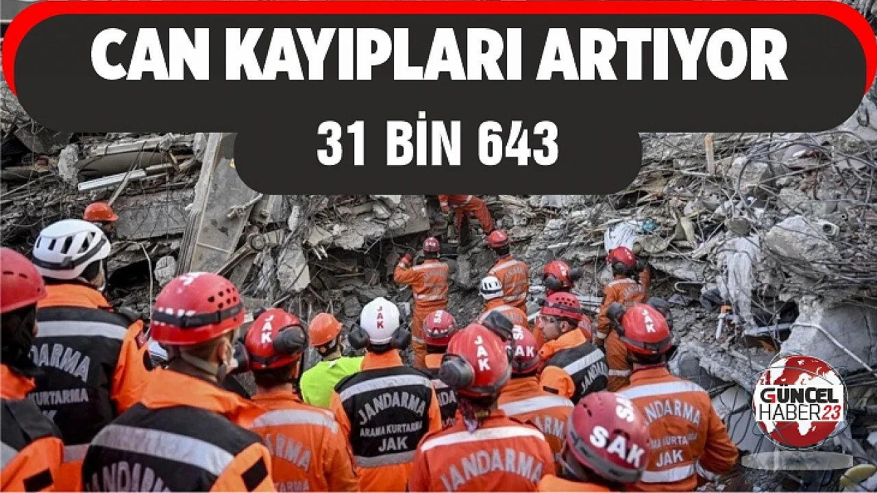 Kahramanmaraş merkezli 10 şehrimizi vuran 7.7'lik ve 7.6'lık depremde toplam can kaybı 31 bin 643'e ulaştı. Türkiye, 6 Şubat Pazartesi günü Kahramanmaraş merkezli iki büyük depremle sarsıldı.