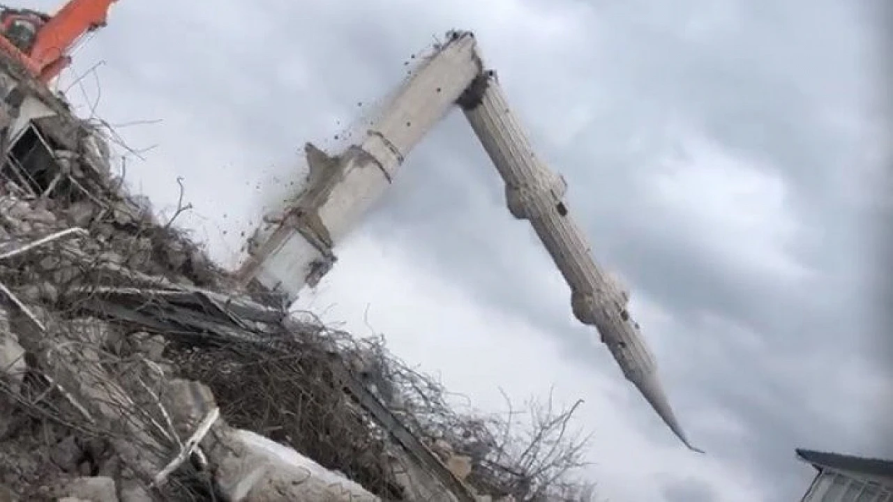 24 Ocak Cuma günü merkez üssü Elazığ’ın Sivrice ilçesi olan 6.8’lik depremde birçok yapı ağır hasar gördü. Ağır hasarlı olan binalar içerisinde acil yıkılması gereken 323 bina için çalışmalar başlatıldı. Şu ana kadar 196 yapının yıkıldığı kentte 25 ayrı noktada da yıkım çalışması Çevre ve Şehircilik Bakanlığı koordinesinde sürüyor. Bugün depremin merkez üssü Sivrice’de bulunan caminin minaresi de kontrollü olarak yıkıldı. Minarenin yıkılma anı kameraya yansıdı. Kent merkezinde de belirlenen noktalardaki acil yıkım kararı verilen yapılan tek tek yıkılıyor.