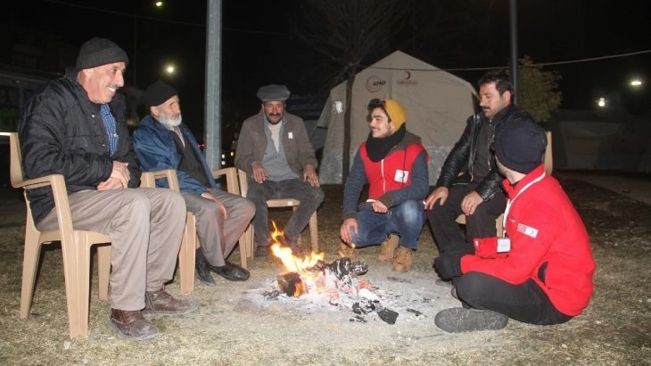 24 Ocak’ta meydana gelen 6.8’lik depremin ardından AFAD ve Kızılay tarafından evlerinde hasar meydana gelen vatandaşlar için 10 farklı noktada çadır kent kuruldu. Çadırlara yerleştirilen vatandaşlara 3 öğün yemek veren ve gerekli malzemelerini teslim eden ekipler, aynı zamanda 7/24 destek olmaya başladı. Geceleri dışarıda ateş yakarak zaman geçiren depremzedeler, deprem psikolojisinden kurtulmaya çalışıyor. Evlerinde fazla bir şey olmadığını sadece binada çatlak olduğunu ifade eden depremzedelerden İzzet Ayçiçek, “Fazla bir zarar yok ama vatandaşlar olarak korkuyoruz. Çadırda kalıyoruz. Ateş yakıp başında bekliyoruz. Gece saat 2-3’e kadar ısınıyoruz. Çocuklar ve hanım yatıyor ama ben yatmıyorum” dedi.