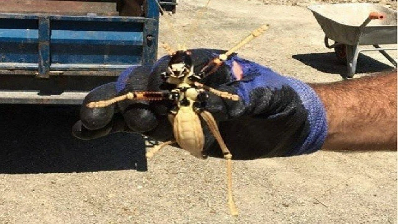 Elazığ'ın Baskil ilçesine bağlı Aşağı Deliktaş köyünde görülen Çağaboğan cinsi çekirge, büyüklüğüyle görenleri hayrete düşürdü.