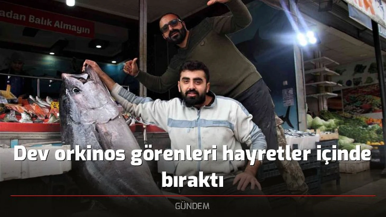 Samsun’da balıkçılar tarafından yakalanan dev orkinos balığı, Elazığ’da bir balıkçıda sergilendi. 180 santimetre uzunluğunda ve 144 kilo ağırlığındaki dev orkinos yoldan geçen vatandaşların ilgi odağı oldu. Orkinosun kilosunun 70 liradan satışa çıkarılacağı belirtilirken vatandaşlar da balıkla sırayla fotoğraf çekti.