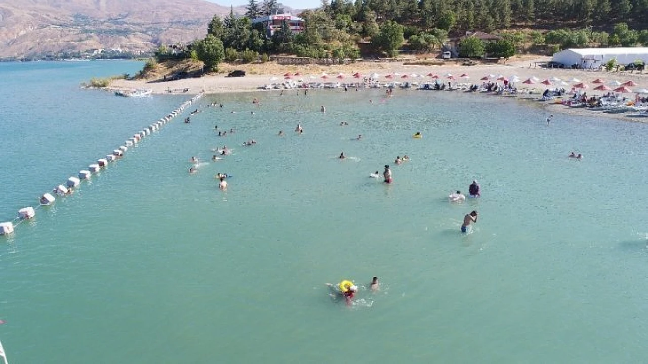 Son günlerde aşırı sıcaklardan bunalan vatandaşlar, Doğu'nun gizli denizi olarak bilinen Elazığ'ın Sivrice ilçesinde bulunan Hazar Gölü'ne akın etti.