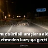 Domuz sürüsü araçlara aldırış etmeden karşıya geçti