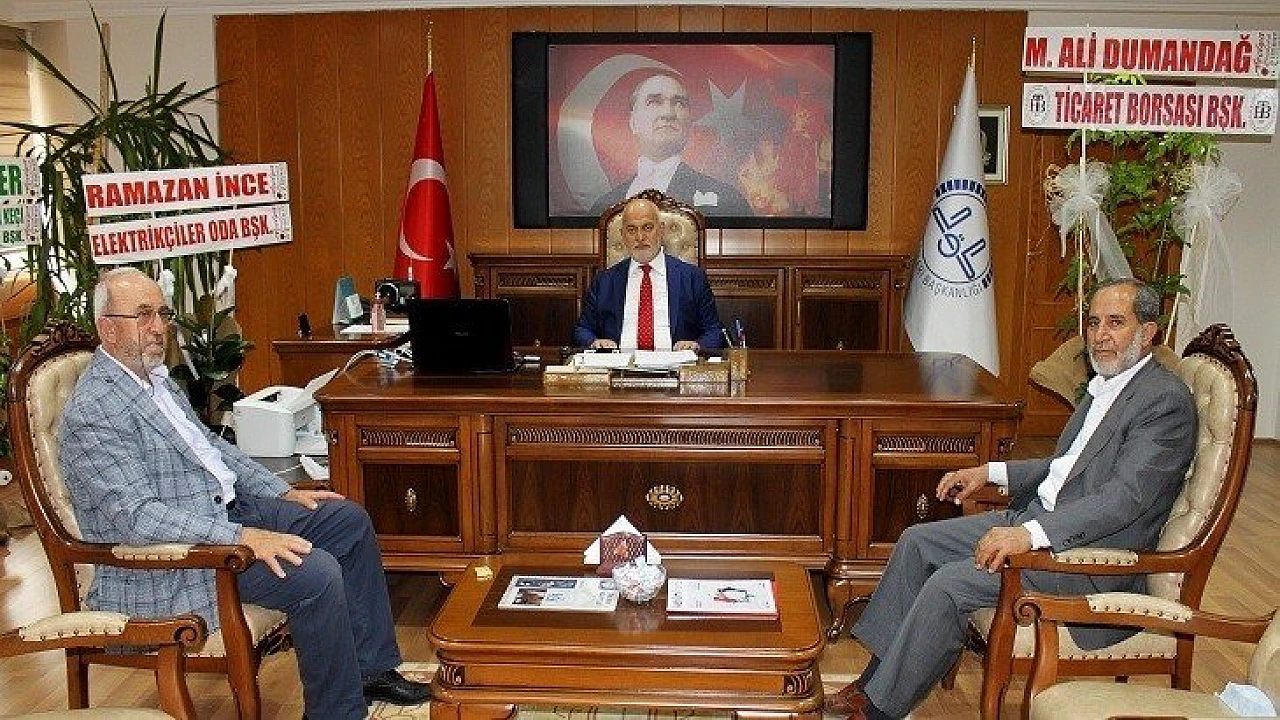 Elazığ Ticaret Borsası Yönetim Kurulu Başkanı Mehmet Ali Dumandağ ve TDV Elazığ Şubesi Yönetim Kurulu Üyesi Recep Polatcan Müftü Aydın’ı makamında ziyaret ederek hayırlı olsun dileklerini ilettiler.