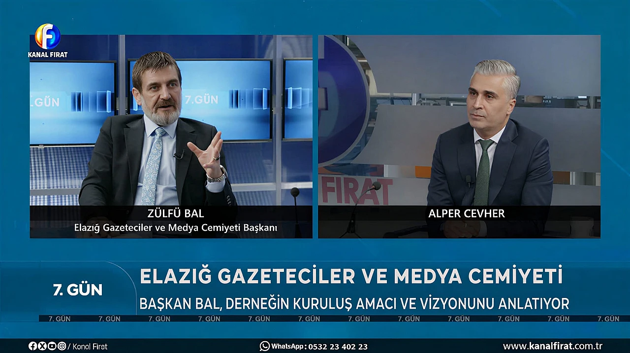 Elazığ Gazeteciler ve Medya Cemiyeti Başkanı Zülfü Bal, Kanal Fırat'da Alper Cevher'in programına konuk olarak cemiyetin hedeflerini ve yol haritasını açıkladı. EGMC Başkanı Bal, Elazığ basınının sorunlarını görmezden gelmeyen ve sahada aktif rol alan bir cemiyet olduklarına dikkat çekti