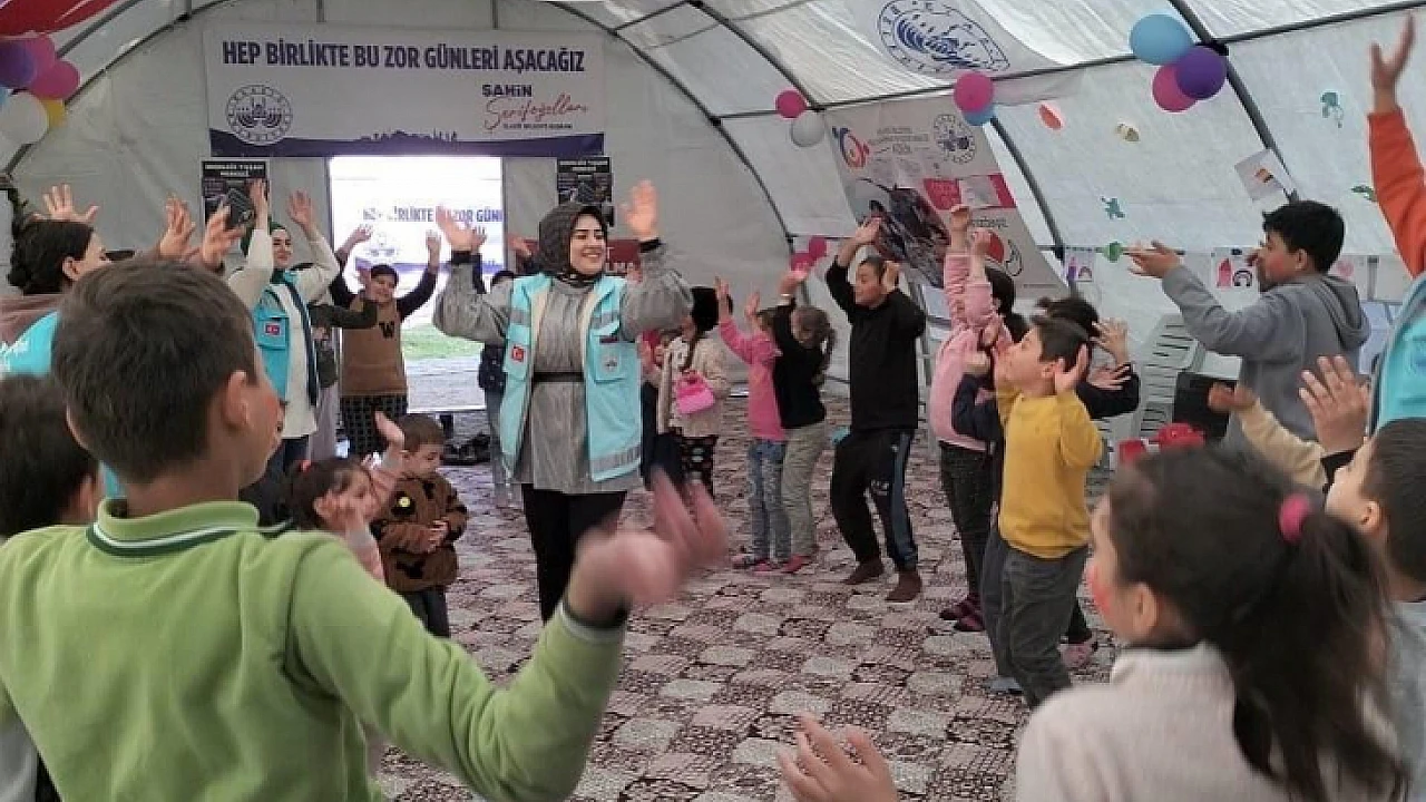 Öte yandan, psikososyal destek ekipleri de çocukların mutlu olması ve depremde yaşadıkları travmayı atmaları için çalışmalarını sürdürüyor.