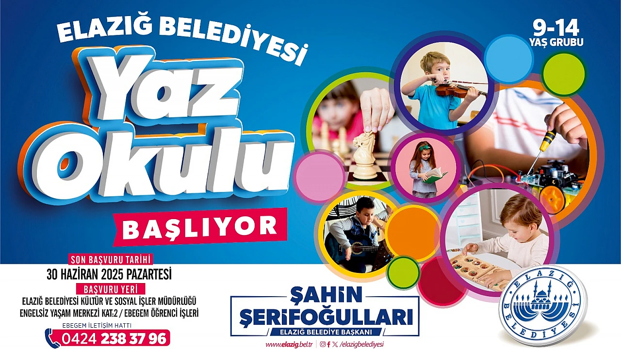 Elazığ Belediyesi Basın-Yayın ve Halkla İlişkiler Müdürlüğü’nden yapılan açıklamada, bütün çocuklar Yaz Okulu'na davet edildi.