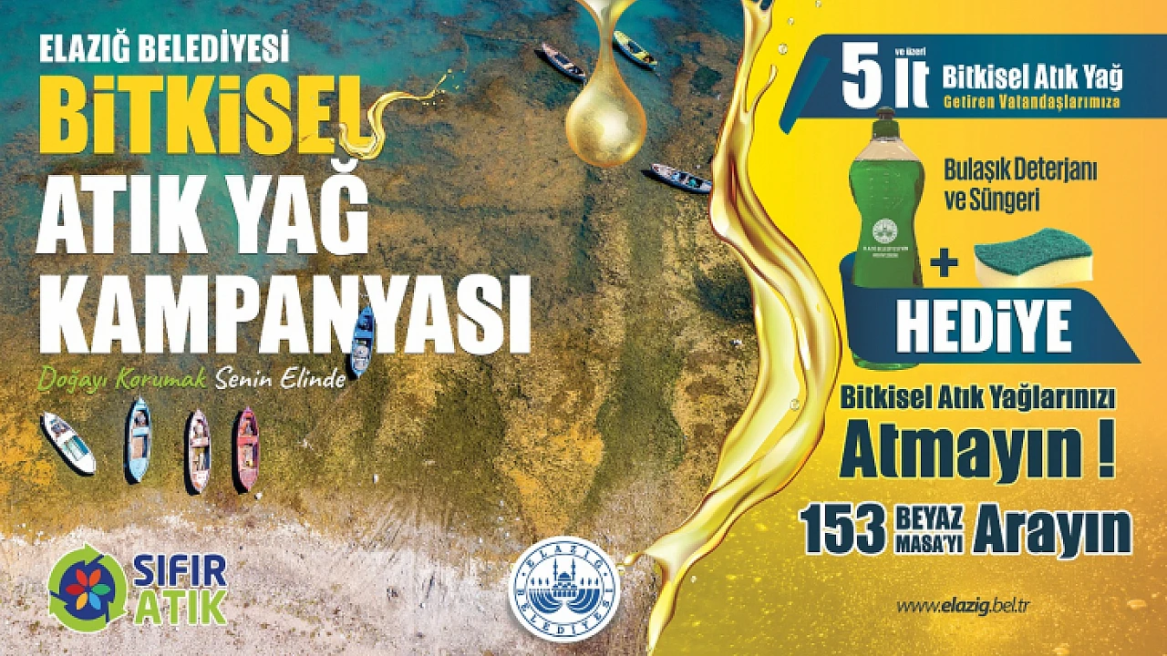 Elazığ Belediyesi Basın-Yayın ve Halkla İlişkiler Müdürlüğü tarafından kampanyaya ilişkin yapılan açıklamada, “Daha temiz ve yaşanabilir bir çevre için çalışmalarımız kesintisiz devam etmektedir. Yürüttüğümüz çalışmalar doğrultusunda Çevre Koruma Müdürlüğümüz koordinesinde Bitkisel Atık Yağ Toplama Kampanyası başlatıldı. Vatandaşlarımız tarafından toplanan atık bitkisel yağlar, 153 Beyaz Masa ile irtibata geçilmesi halinde ekiplerimiz tarafından verilen adresten alınacaktır. Toplanan en az 5 litre atık bitkisel yağ için, bulaşık deterjanı ve süngerden oluşan ikili temizlik seti hediye edilecek. Toplanan atık yağlar ekonomiye geri kazandırılırken, kampanya ile toplumda sıfır atık bilincinin oluşmasına da katkı sağlanmış olacaktır.” denildi.