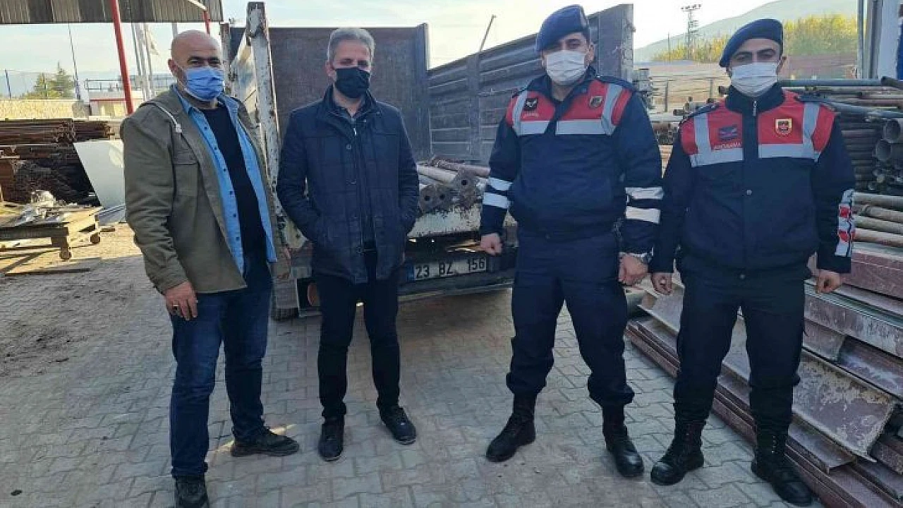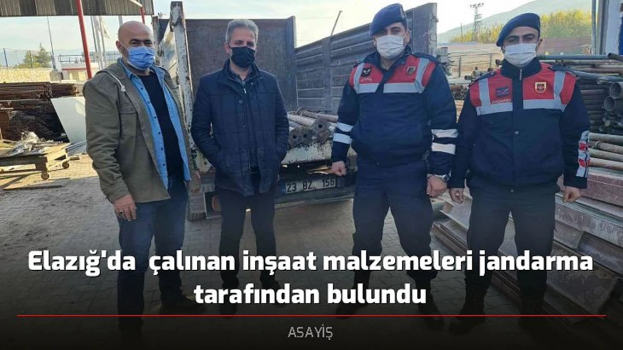 Elazığ'da çalınan inşaat malzemeleri jandarma ekipleri tarafından bulunarak sahibine teslim edilirken, şüpheliler hakkında yasal işlem başlatıldı.