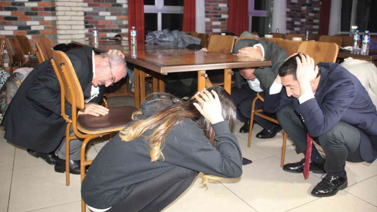Elazığ’da Kredi ve Yurtlar Kurumunda ‘Çök, kapan, tutun’ tatbikatı gerçekleştirildi.