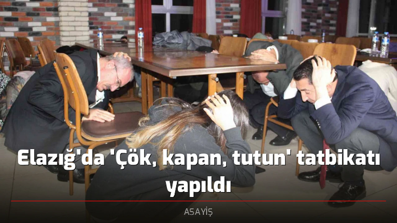 İçişleri Bakanlığı, AFAD ile Gençlik ve Spor Bakanlığı iş birliğinde Türkiye geneli 81 ilde yapılan ’Çök, Kapan, Tutun’ tatbikatı Elazığ’da da gerçekleştirildi. Bu çerçevede tatbikat Harput Kız Yurdu başta olmak üzere tüm KYK kurtlarında yapıldı. Tatbikata Vali Ömer Toraman, FÜ Rektörü Fahrettin Göktaş, Gençlik ve Spor İl Müdürü Abdulsamet Eren’de katıldı. İkaz zilinin çalması ile öğrenciler ve protokol çök, kapan ve tutun hareketini yaptı. Ardından tüm yurt tahliye edildi.