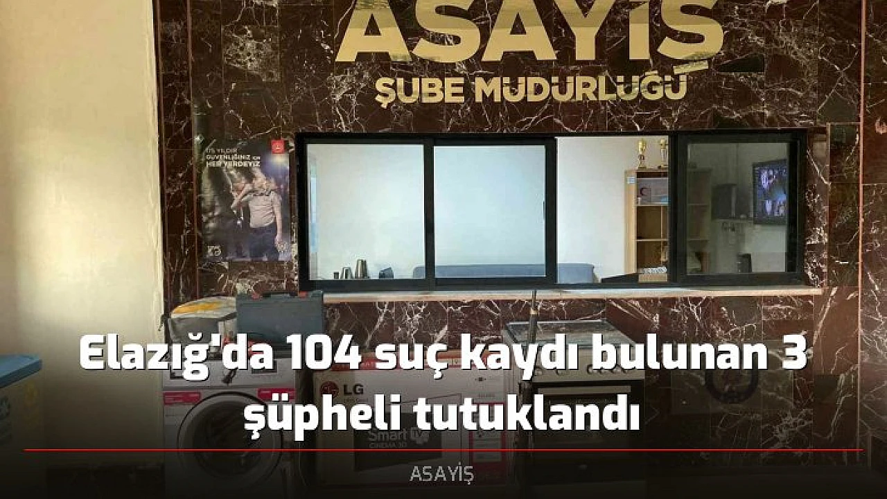 Elazığ'da toplamda 104 ayrı suç kaydı bulunan 3 şüpheli, hırsızlık yaptıktan sonra polis ekipleri tarafından yakalandı. Adliyeye sevk edilen şüpheliler tutuklanarak cezaevine gönderildi.